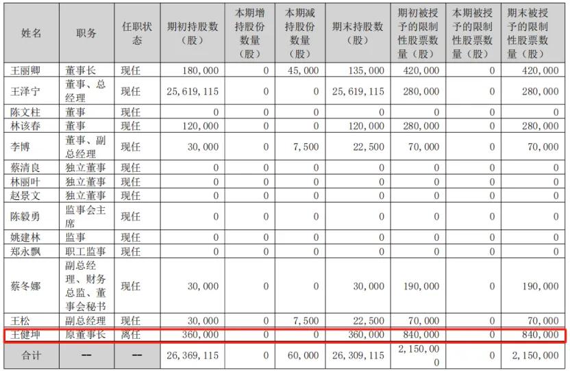 王丽卿正式接任董事长一职,同时接任公司法定代表人;而总经理职务则由王健坤之子、原副总经理王泽宁接任。
