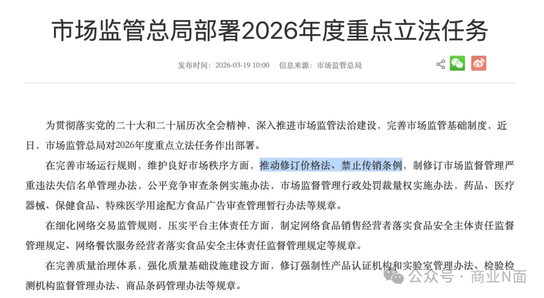 当然,《禁止传销条例》颁布已在二十一年前,新时代产生了新的商业模式。南都记者注意到,2024年,《禁止传销条例》首次被市场监管总局纳入重点立法任务,正式启动修订筹备。2026年3月19日,2026年度重点立法任务进一步提出“推动修订价格法、禁止传销条例”,相关红线有望与时俱进,划分得更加清晰。