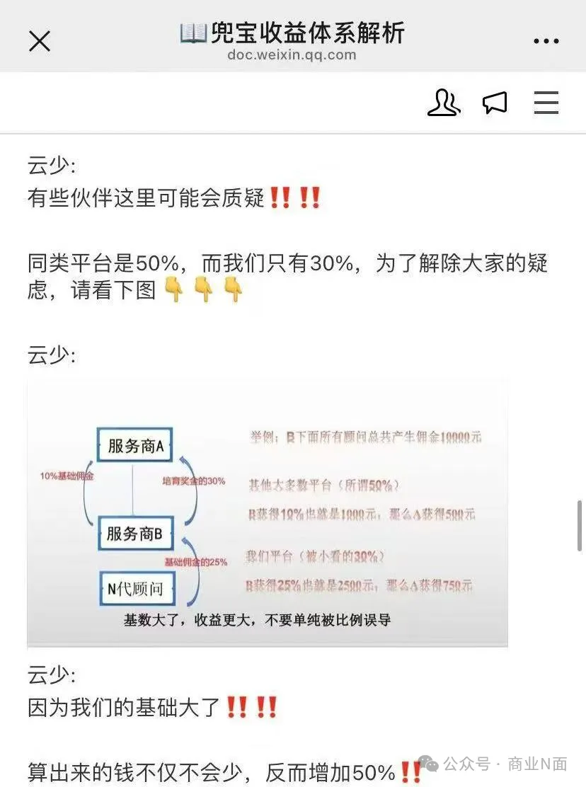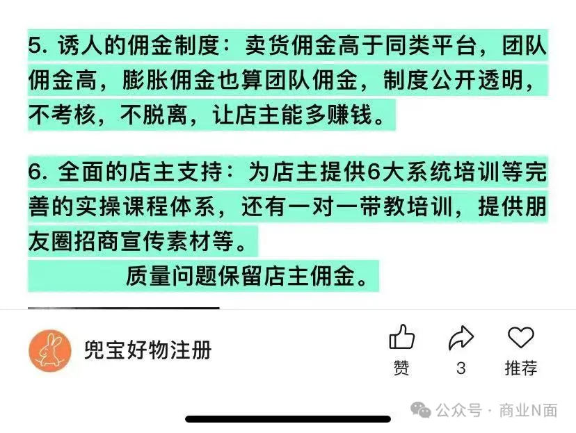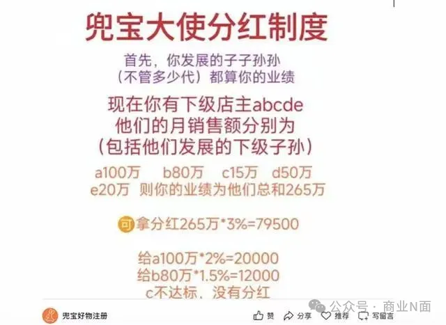 名为“兜宝好物注册”的微信公众号曾发文直言,“只要以你为起点,下面子子孙孙的业绩都是你的。”