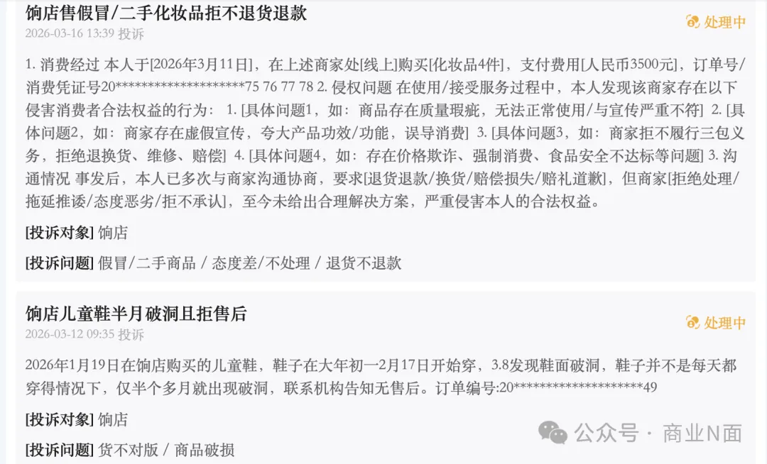 “饷店”产品质量屡遭投诉,买家评价存异常