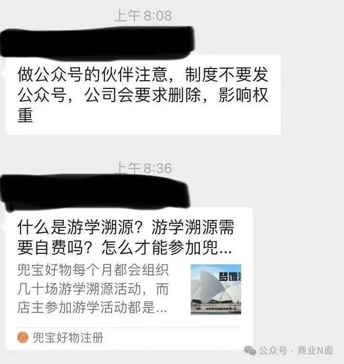 其一,《情况说明》发出后不久,即有“导师”在兜宝好物学习群里要求做公众号的伙伴不要将奖励制度发公众号,公司会要求删除。