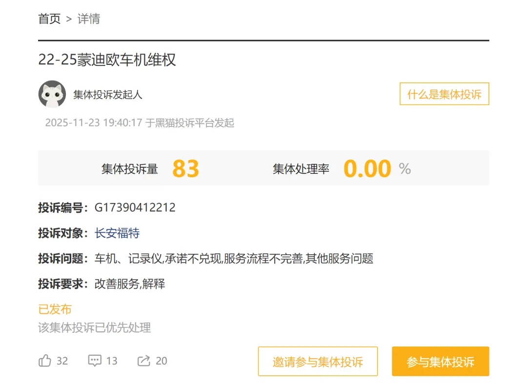 11月23日晚,黑猫消费者投诉平台上,出现了一起少见的车企“集体投诉”。