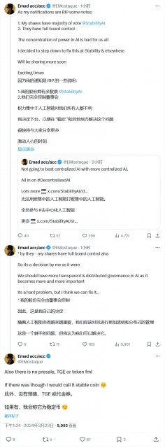 Stability AI 公司在博文中表示,莫斯塔克离职后,其精力会放在去中心化的人工智能上。