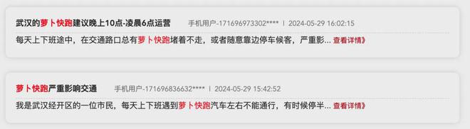 近日,在武汉城市留言板上,出现了不少关于萝卜快跑严重影响交通的留言。