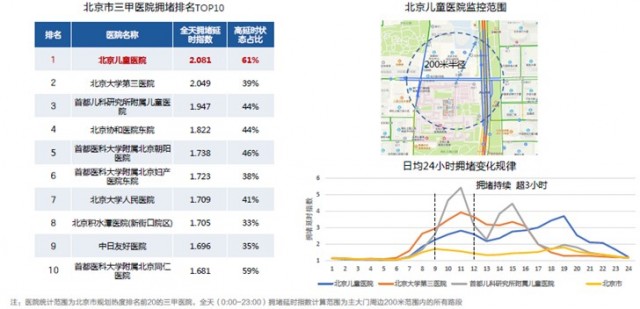 深圳、哈尔滨公交的平均步行距离和换乘距离分别在超大城市和特大城市中最小,湖南省三甲医院的平均全天拥堵延时指数最高,北京儿童医院 上榜三甲医院拥堵TOP1最多的北京市。