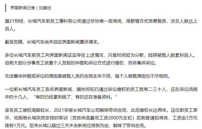长城汽车烦恼多:裁员、高管离职,销量仅完成了58%快讯