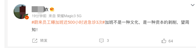 「我在蔚来半年加班500小时,进急诊3次,体检21处异常 ……」互联网+