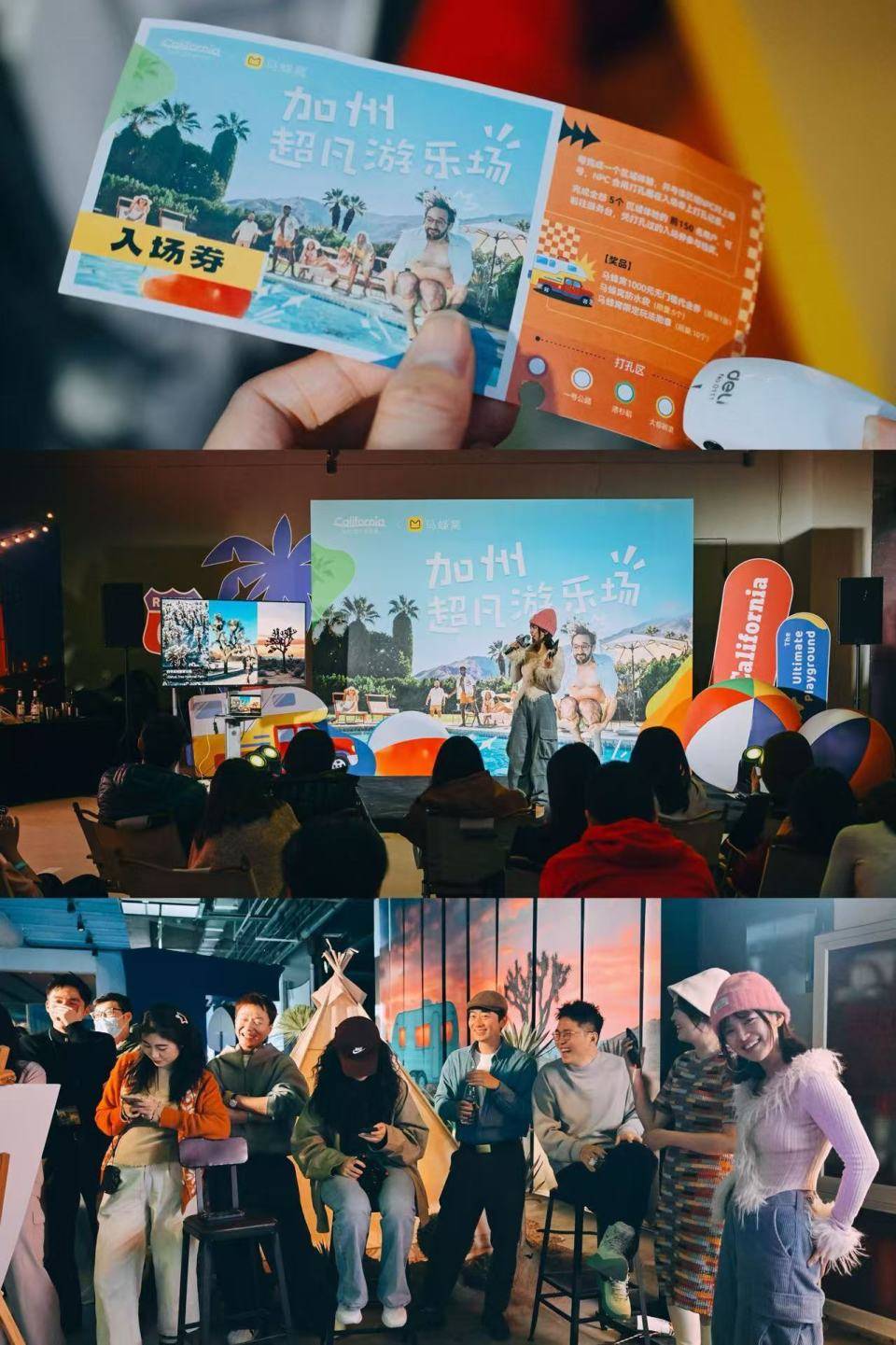 作为加州旅游局的长期合作伙伴,马蜂窝曾在今年10月发起“超级假期”招募令,带领五位蜂首作者来到加州,用为期半个月的“加州超凡之旅”,深度体验当地的自然风光、人文特色。在体验经典路线的同时,挖掘更多奇趣小众的新玩法。蜂首作者们在加州拍摄的图片,也作为影展在本次活动中展出,为到场的玩家们全面又直观的展现了年轻旅行家眼中的“加州超凡游乐场”。
