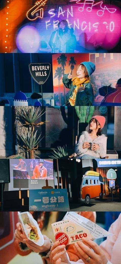 五个加州标志性人气目的地主题展区是本次活动的亮点,在“旧金山主题区”聆听爵士乐队现场表演,享用现场调制的鸡尾酒;在“一号公路主题区”的“露天影院”重温荧幕经典;在“洛杉矶主题区”和伙伴们一起活力运动,在专业教练带领下来一场Body Combat;在“大棕榈泉主题区”享受沙漠绿洲露营的同时,来一杯手冲咖啡;在“圣地亚哥主题区”感受异域风情,品尝正宗墨西哥Taco,体验亡灵节主题彩绘。旅行爱好者们可以在这场沉浸式的感官体验中化身“加州大玩家”,拍照打卡的同时完成从北至南的加州全境云旅行。在解锁全部体验后,还有机会收获旅行千元代金券等惊喜奖励。