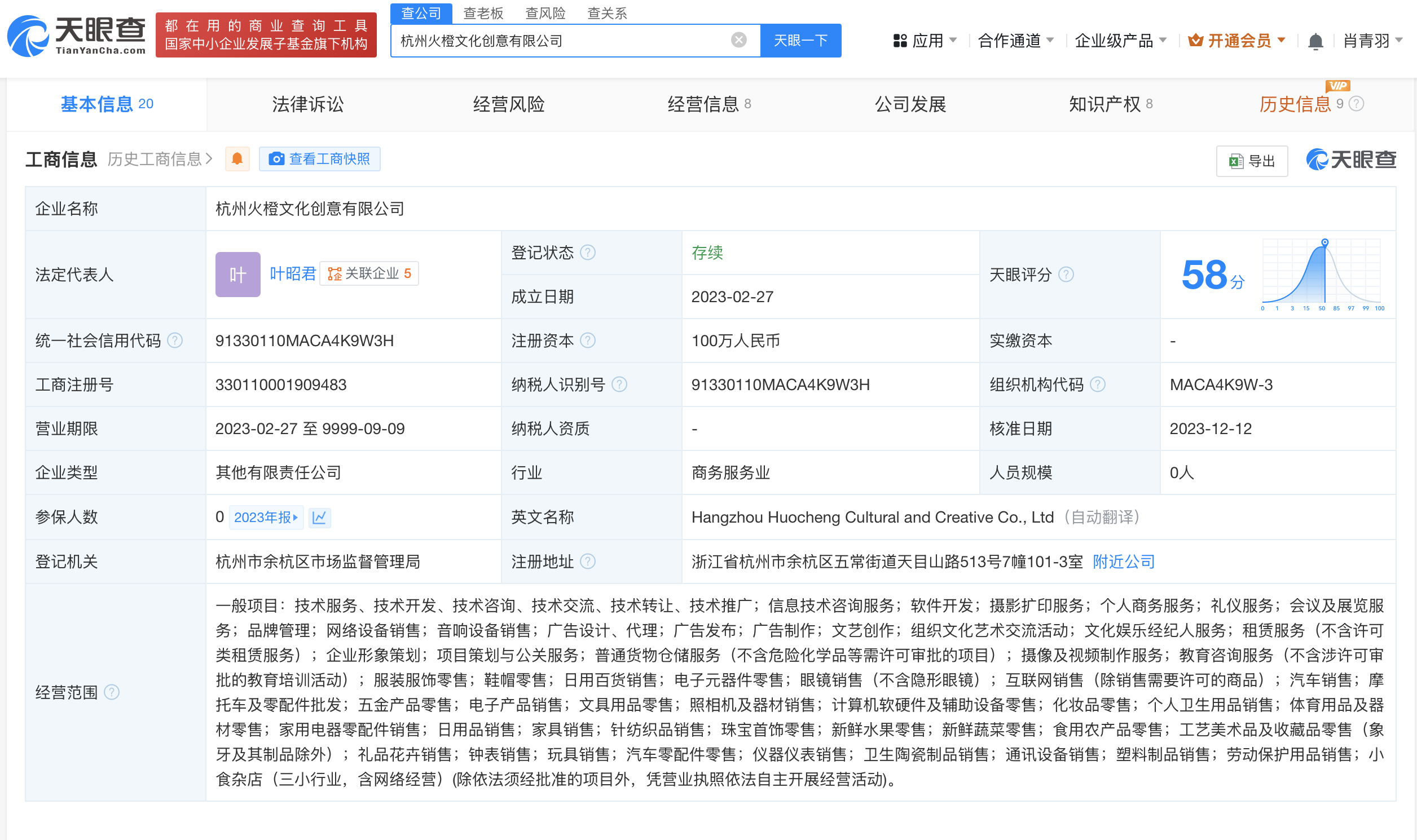 第三方平台数据显示,李凯馨多平台账号出现粉丝下降情况,其中某平台粉丝量近30日减少1.75万,已跌破100万。据悉,火橙互娱今年3月曾发文签约新生代艺人李凯馨。天眼查App显示,杭州火橙文化创意有限公司成立于2023年2月,由杭州纵横肆海网络科技有限公司持股90%。