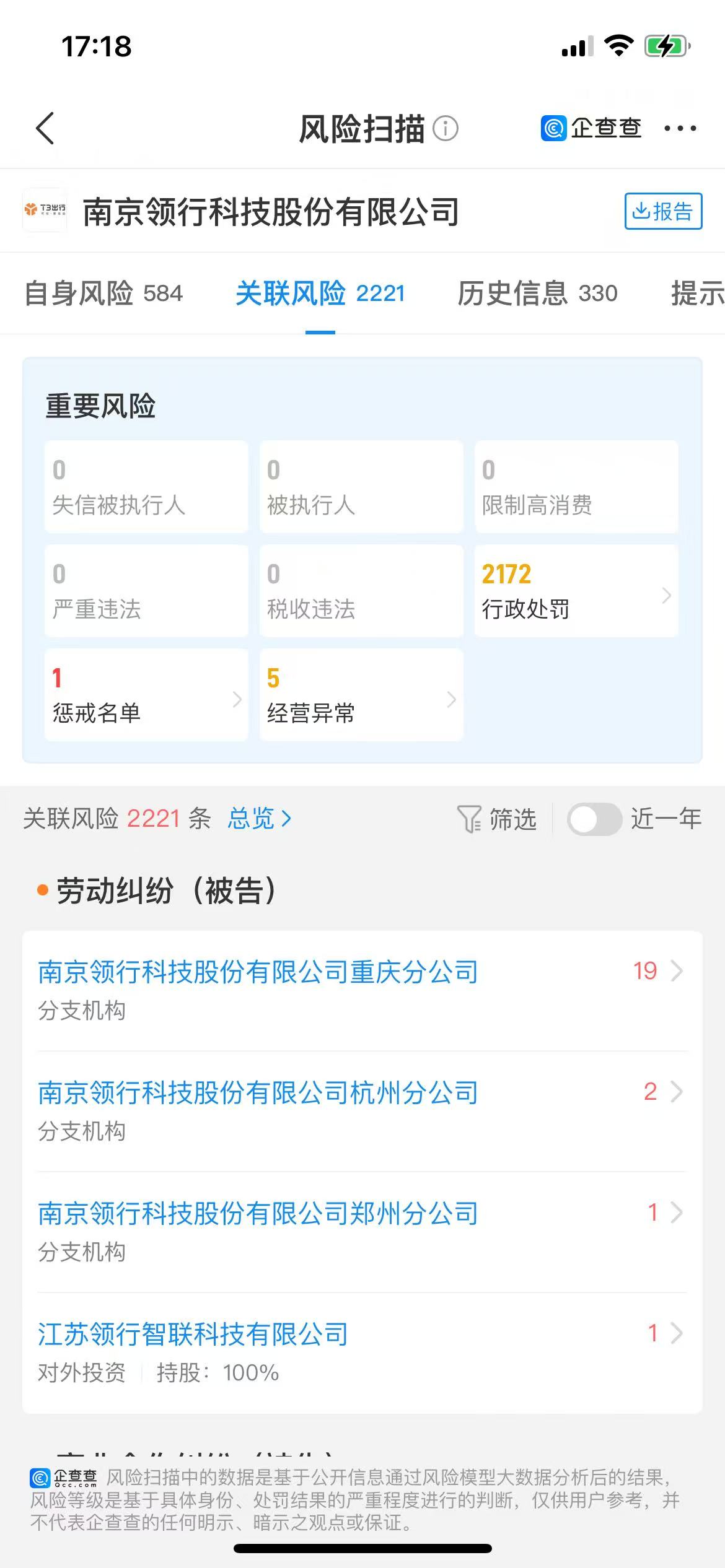 企查查数据显示,作为拥有多家央企背书的网约车平台,T3出行运营主体南京领行科技股份有限公司,累计被行政处罚超2000次,违规行为涉及等多个省份,涉及无证运营、违规收费、信息泄露等多项类型,其中无证运营为最高发违规行为。