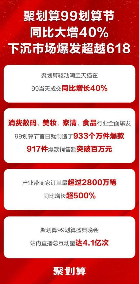 聚划算99划算节更像是一次试探,在验证当聚划算在供给侧和营销侧两端同步发力时,能在下沉市场产生多大的化学反应。