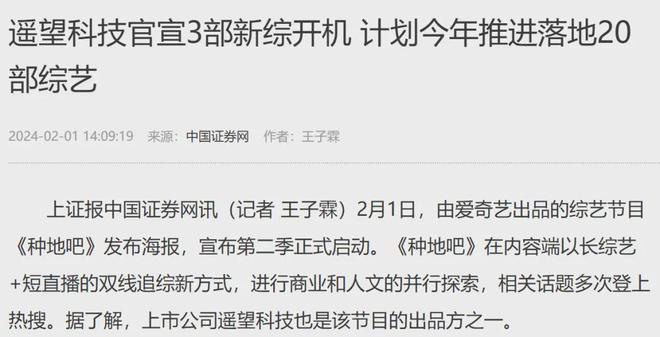 除此之外,2022年以来,遥望科技的身影还出现在多档网络综艺节目的背后,其还曾对外宣称2024年要做20部综艺。