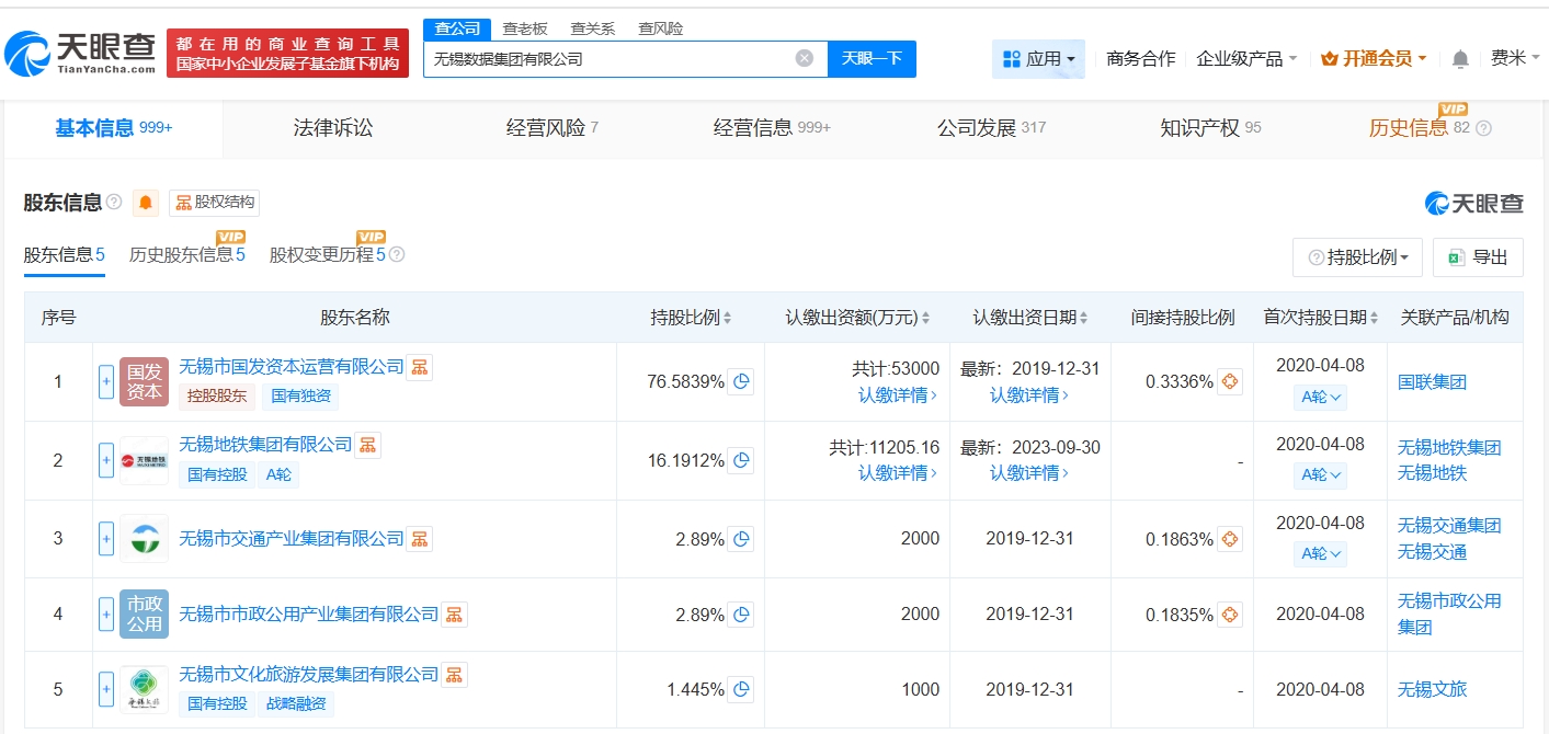 天眼查App显示,近日,无锡数据集团有限公司发生工商变更,注册资本由约2.92亿人民币增至约6.92亿人民币,增幅约137%。