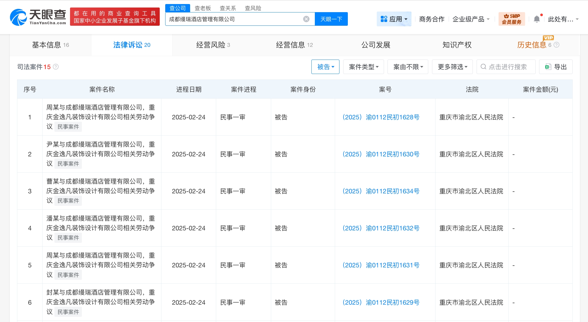 天眼查App显示,FUFU汤泉运营方成都缦瑞酒店管理有限公司成立于2022年4月,法定代表人为郭宏涛,注册资本300万人民币,经营范围含酒店管理、会议及展览服务、企业管理、餐饮管理、洗浴服务、足浴服务等。股东信息显示,该公司由郭宏涛、胡景山、张建杰等共同持股。法律诉讼信息显示,该公司涉及多起诉讼,案由涉及劳动合同纠纷、房屋租赁合同纠纷等。