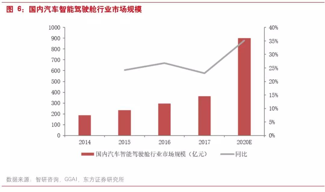 这个过程将非常迅猛。根据智研咨询和GGAI 的数据,2014年至2017年之间,汽车智能驾驶舱行业市场规模从188亿元增长到364亿元,年均增长24.7%。