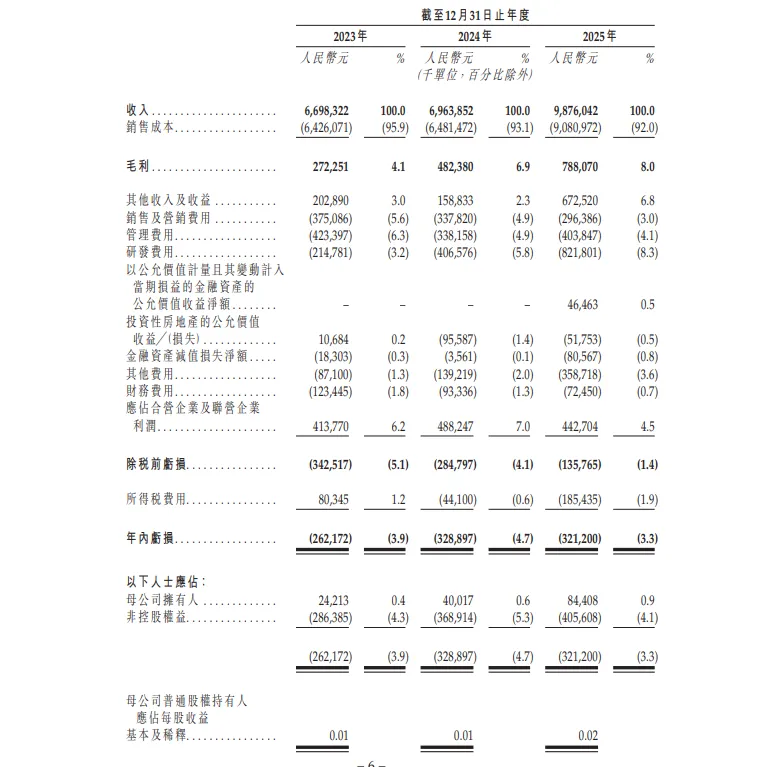 招股书披露的另一组数据,同样令人担忧。2023年至2025年,公司连续三年录得净亏损,分别为-2.62亿元、-3.29亿元和-3.21亿元,三年累计亏损超过9亿元。