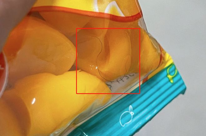 “买到的来伊份软糖还没打开,就发现里面夹带了一根毛发。吃了这么多年,现在价格也不便宜,没想到连食品质量都没有把控好。”