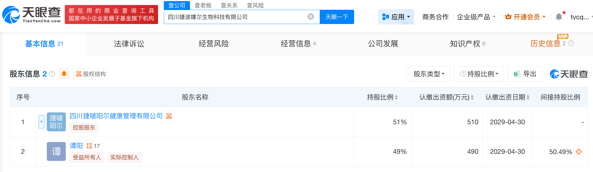 天眼查App显示,四川婕波噻尔生物科技有限公司成立于2024年5月,法定代表人为谭阳,注册资本1000万人民币,经营范围包括细胞技术研发和应用、人体干细胞技术开发和应用、健康咨询服务等,由四川捷啵阳尔健康管理有限公司、谭阳共同持股。参保人数信息显示,该公司2024年参保人数为0。知识产权信息显示,该公司曾于去年申请注册多枚“一觉奣”商标,国际分类为广告销售、啤酒饮料、方便食品,当前商标状态为等待实质审查。