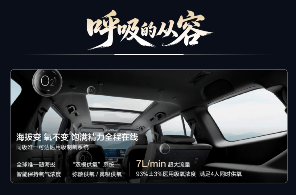 第一,呼吸的从容:全球首搭随海拔自动调氧技术,同级唯一可达医用级制氧技术。BJ60增程行政版集成了“双模供氧”系统,系统会根据海拔与车内氧浓度,智能调节输出,确保氧气浓度始终处于安全舒适区间,有效避免氧气浓度过高的“醉氧”风险。打造“高原移动氧舱”,让用户彻底告别高原反应困扰。