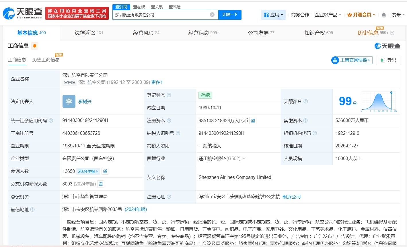 该公司成立于1989年10月,法定代表人为李树兴,经营范围包括旅客票务代理、票务代理服务、商务代理代办服务等,现由中国国航(601111)、深国际全程物流(深圳)有限公司及上述新增股东共同持股。