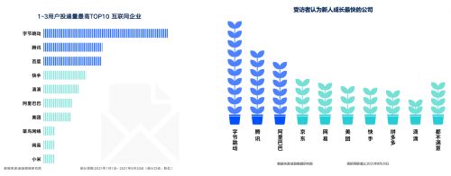 在工作1-3年的职场新人用户投递量榜单中,字节跳动名列第一,腾讯和百度居其次。快手和滴滴超越阿里巴巴,进入前五。在成长性上,将近80%的受访用户认为字节跳动是职场新人成长速度最快的互联网企业,腾讯和阿里巴巴位列其次。