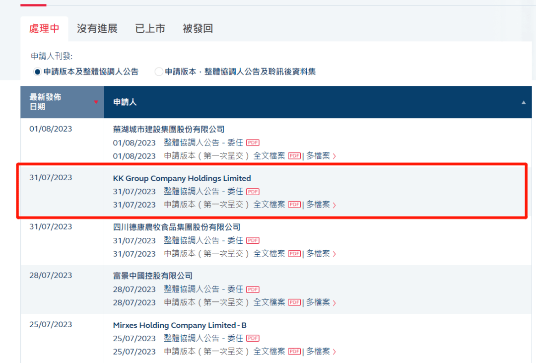 今日,聚美丽从港交所获悉,7月31日KK集团已经更新了招股书,继续推进港交所主板上市进程。