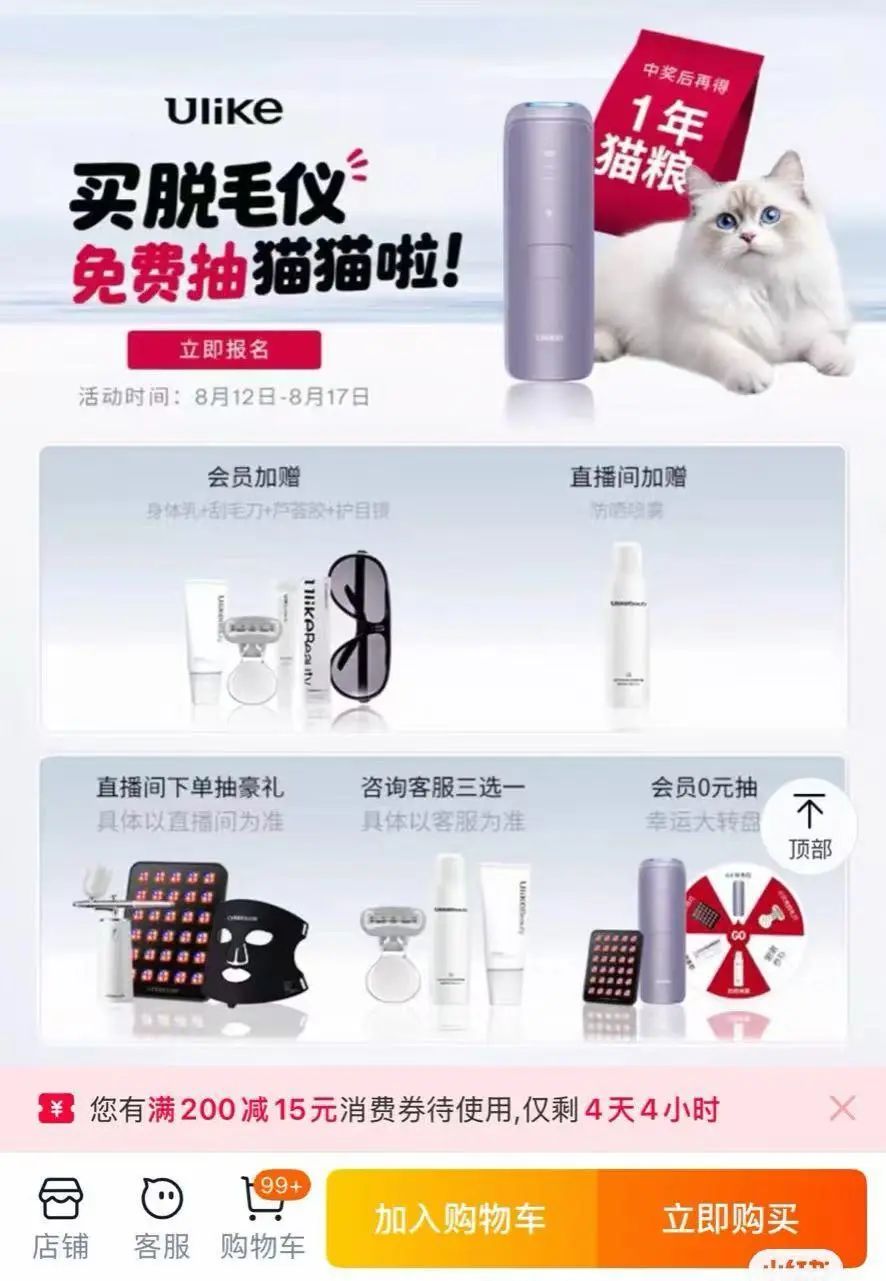 近日,知名脱毛仪品牌Ulike推出的买脱毛仪送猫的营销活动引发质疑。据网友在社交平台发布的图片,Ulike在其官方旗舰店称,用户购买脱毛仪可以免费抽猫咪,中奖后用户可以再获得一年的猫粮。但该活动被质疑利用动物营销,或未真正关注动物福利。