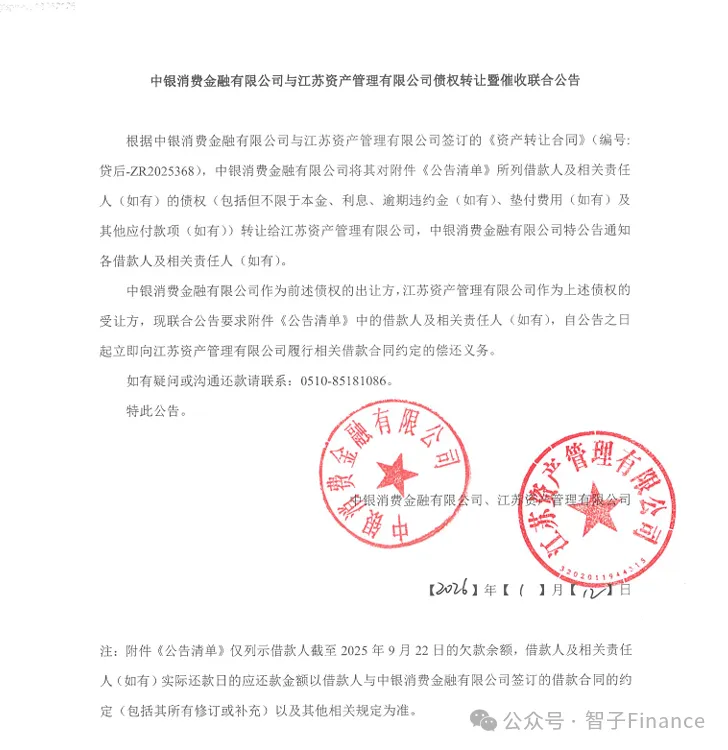 而债权回收效率完全取决于江苏资产的处置能力,若其在催收团队、数字化处置工具或区域司法资源整合方面存在短板,可能导致回收率低于预期,给中银消金带来隐性损失。