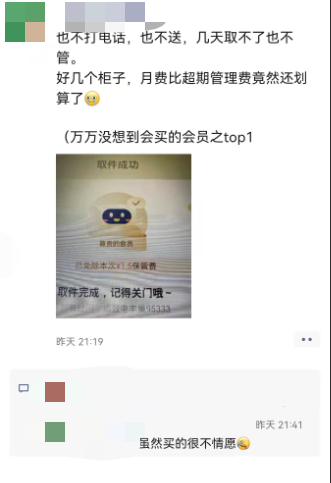 比较无奈的是,很多人都在与快递员的“斗争”中败下阵来,甚至有的还花钱买了快递柜的会员,毕竟超期要收管理费。一位广告行业的白领就在朋友圈吐槽称,“也不打电话、也不送,几天取不了也不管,月费比超期管理费竟然还划算了,虽然买的不是很情愿。”