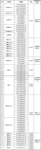 具体汽车车型名单如下: