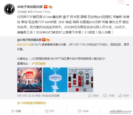 LPL季后赛半决赛iG 3:1战胜TOP 将与JDG争夺冠军快报