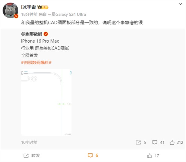 据知名数码博主@刹那数码 最新晒出的CAD设计图显示,与此前曝光的消息基本一致,全新的iPhone 16 Pro Max屏幕盖板的边框仅有1.15mm。而随后另一位数码博主@i冰宇宙 也转发表示:“和我量的整机CAD图面板部分是一致的,说明这个事靠谱的很。”结合此前相关爆料,目前来看这一数据基本可以确定是可信的,由此可以推测,该机大概率将成为全球边框最窄的手机。这一设计无疑将为用户带来更为沉浸的视觉体验,同时也展示了苹果在工业设计上的持续创新和追求。