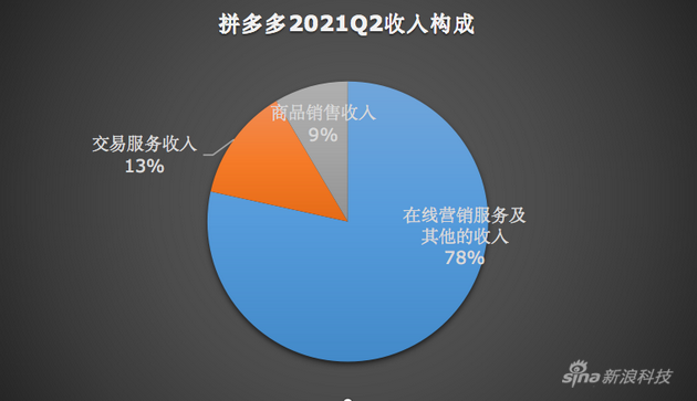 交易服务收入的增长可能与多多买菜的营收增长有关,拼多多发布截至6月30日的2021年第二季度财报,拼多多目前依然是在线营销服务及其他的收入为主要收入来源。