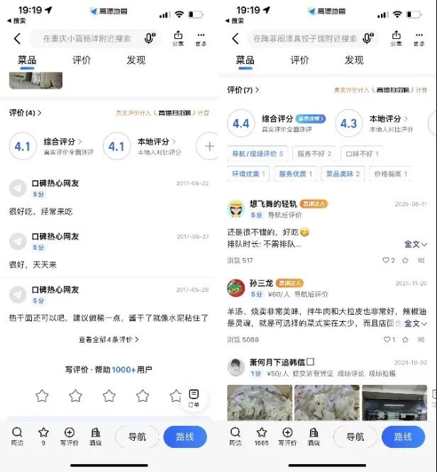 目前来看,没有登上“高德扫街榜”的小店,大部分只有少量评价,内容仍有待丰富。不少消费者担忧,高德要补上内容短板,会否因此催生出“冲评价”的店铺,让真实评价成为“伪命题”。