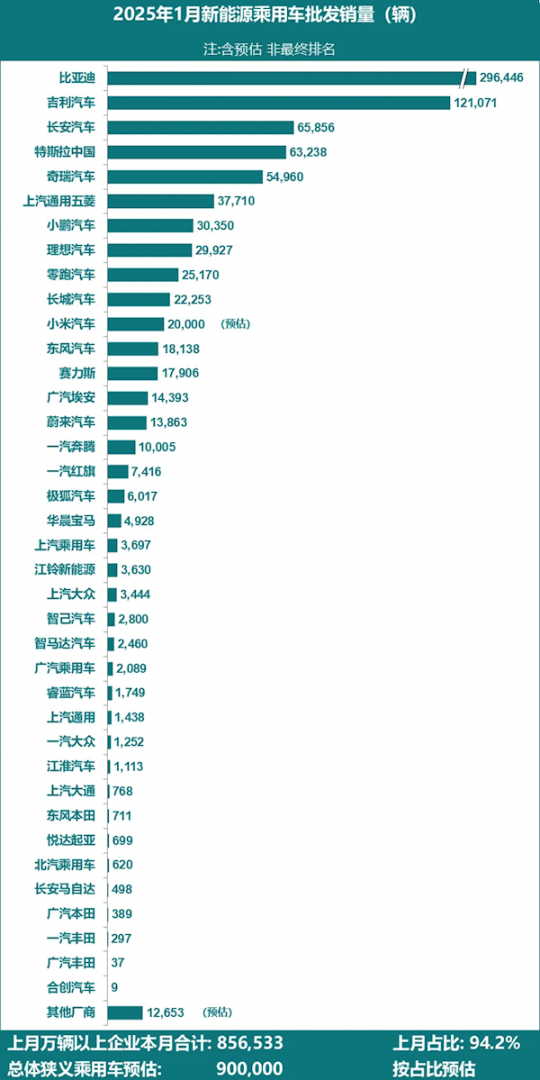 1月全国新能源乘用车销量增长31%,小米汽车销量首次超越问界汽车