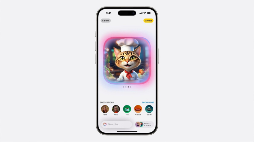 用户可以输入描述,并从动画、插图或草图中进行选择,“Image Playground”将根据用户的喜好创建图像。预览图像将在设备上创建,并且生成的图像可以在信息、备忘录、无边记甚至专用的“Image Playground”应用中访问。