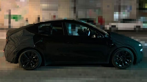 车侧整体依然是采用了轿跑式的风格,拥有溜背造型,同时配备了造型动感的黑色双五辐轮毂,运动感强烈,透过玻璃可以看到其座椅疑似换上了新款Model 3同款运动风格。