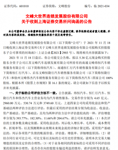 事实上,不仅徐翔反对文峰股份这起收购方案,上交所也连夜下发问询函。