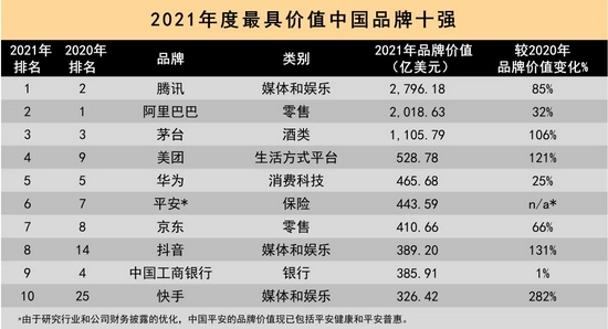凯度发布2021年最具价值中国品牌排行榜:腾讯升至榜首快报