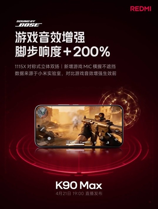 REDMI K90 Max搭载对称立体声双扬声器:与Bose联合调音快讯