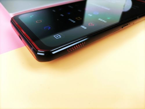 值得注意的是,在全面屏大行其道的大趋势下,游戏手机基本都没有跟随潮流追求极致的全面屏,笔者认为这是符合实际需求的。一方面,没有极致的屏占比不代表该机的屏占比不高,实际上拯救者电竞手机Pro的屏占比还是非常高的。其次,屏幕两端多余的空间不仅可以用来安排音效更佳的扬声器,而且可以避免双手紧密的握持造成的误触,更利于玩家的游戏体验。