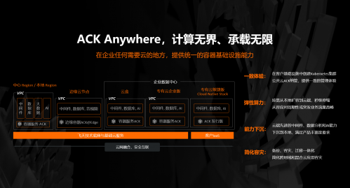 此前,阿里云推出了一云多形态的部署架构,提供中心云、本地云、边缘云、云盒等多种部署形态,阿里云容器服务ACK(Alibaba Cloud Container Service for Kubernetes)的全面升级意味着公共云能力向本地化进一步延伸,客户在自建的数据中心内也能体验到低成本、低延迟、本地化的公共云产品。