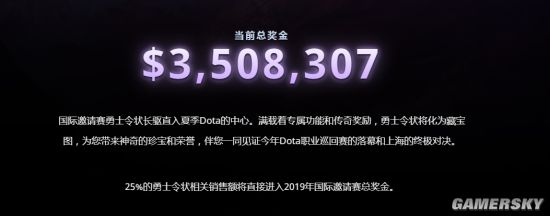 根据《Dota2》官方网站的实时数据,截至发稿时,2019国际邀请赛当前总奖金已经达到了3508307美元。去年的Ti8奖池突破了千万美元,而如果总奖金超过去年,所有玩家都将获得10000勇士积分奖励,如果超过3000万美元还将再获得10000勇士积分奖励。