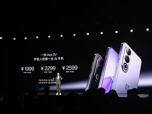 【Techweb】3月21日,全新的一加Ace 3V如期与大家见面,该机全球首发第三代骁龙7+移动平台,还配备独家自研的“潮汐架构”,实现性能的全面提升,号称要“打造中端手机产品力新标杆”,一经亮相便受到了外界的广泛关注。现在有最新消息,近日一加官方发布最新预告,该机将于3月25日也就是今天正式发售,售价为1999元起。