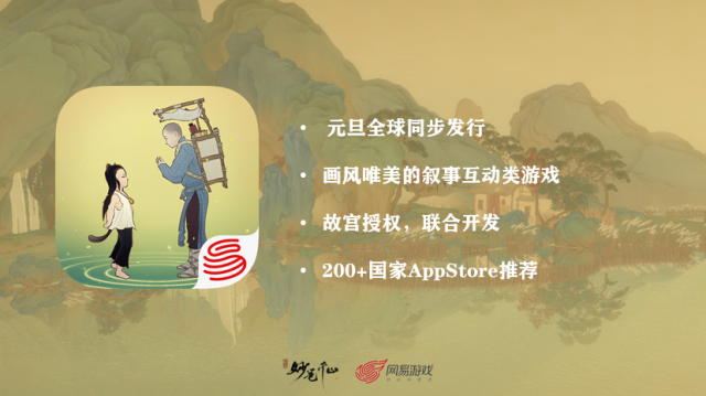 《妙笔千山》登录App Store后,全球200多个国家和地区同步首发。将传承千年依然魅力不减的青绿山水画以全新面貌向全世界玩家呈现,波澜壮阔的山河美景,感人肺腑的画中故事,别出心裁的互动玩法,隽永趣味的探索解密,用年轻人最喜闻乐见的游戏形式,又一次推进了中国文化出海的前进脚步。