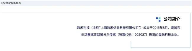 1月30日,记者查看数禾科技官网看到,其关于公司的简介仍显示其是城市生活圈媒体网络分众传媒投资的金融科技企业。目前相关简介已经撤下。