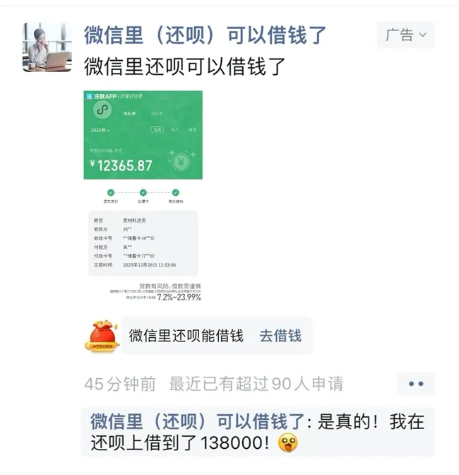 据了解,在助贷新规落地后,“还呗”在社交平台上的信息流广告信息显示,其借款综合年化利率(单利)区间上限已从此前的36%为23.99%。但从上述消费者投诉信息看,“还呗”平台或仍存在借款年利率超过24%的情况。