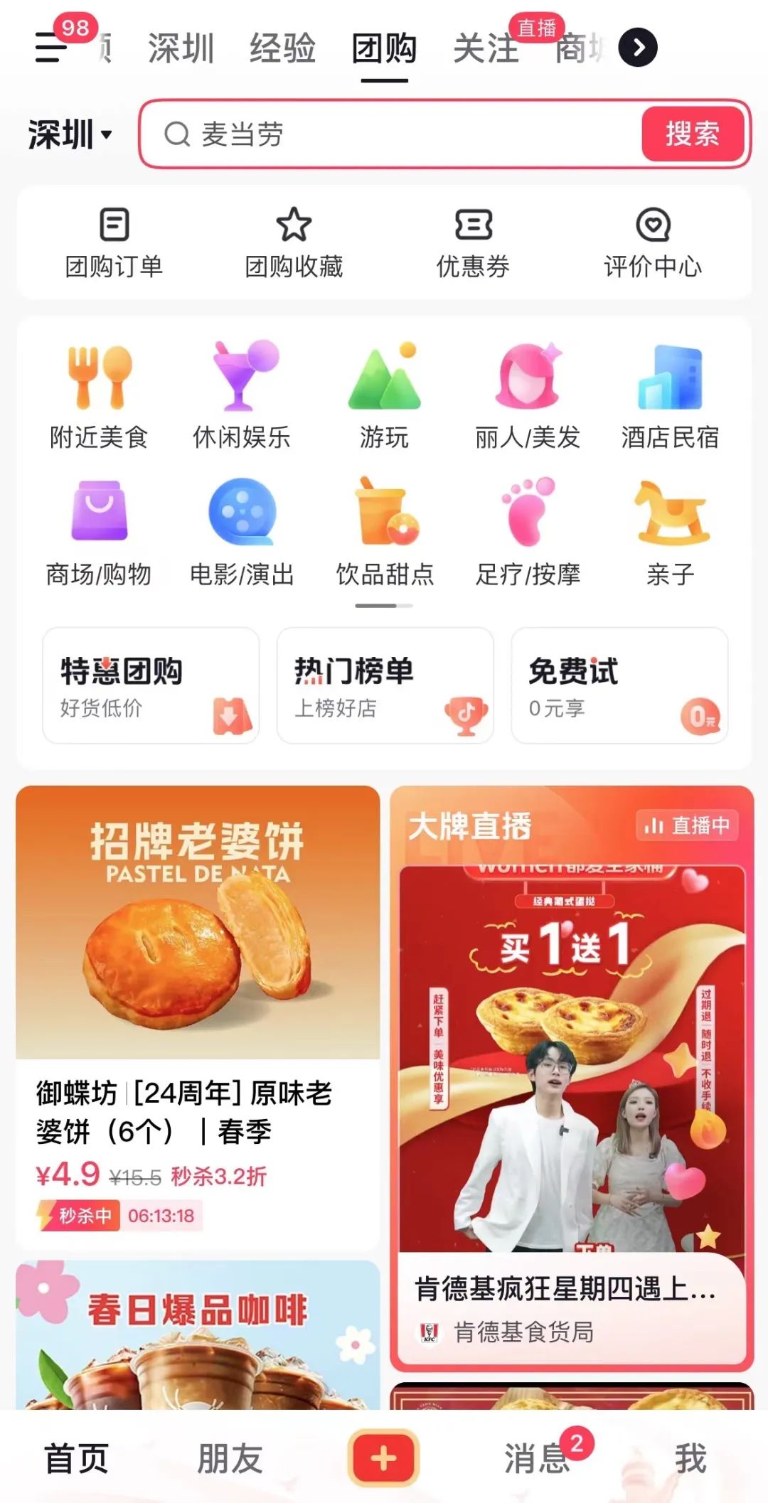 抖音的团购页面背靠抖音已经突破7亿的月活,也为其本地生活带来巨大流量。