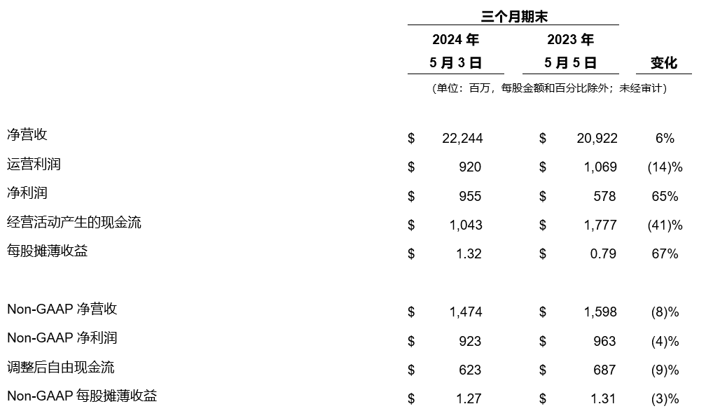主要指标方面,该集团报告期内净利润 9.55 亿美元(当前约 69.33 亿元人民币),同比增长 65%。运营利润为 9.2 亿美元(当前约 66.79 亿元人民币),non-GAAP 运营利润为 15 亿美元(当前约 108.9 亿元人民币)。运营现金流为 10 亿美元(当前约 72.6 亿元人民币)。每股摊薄收益为 1.32 美元(当前约 9.5832 元人民币),同比增长 67%。
